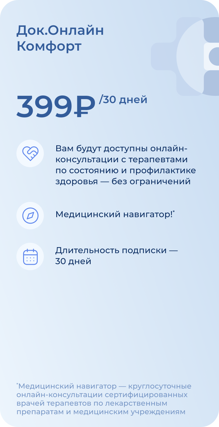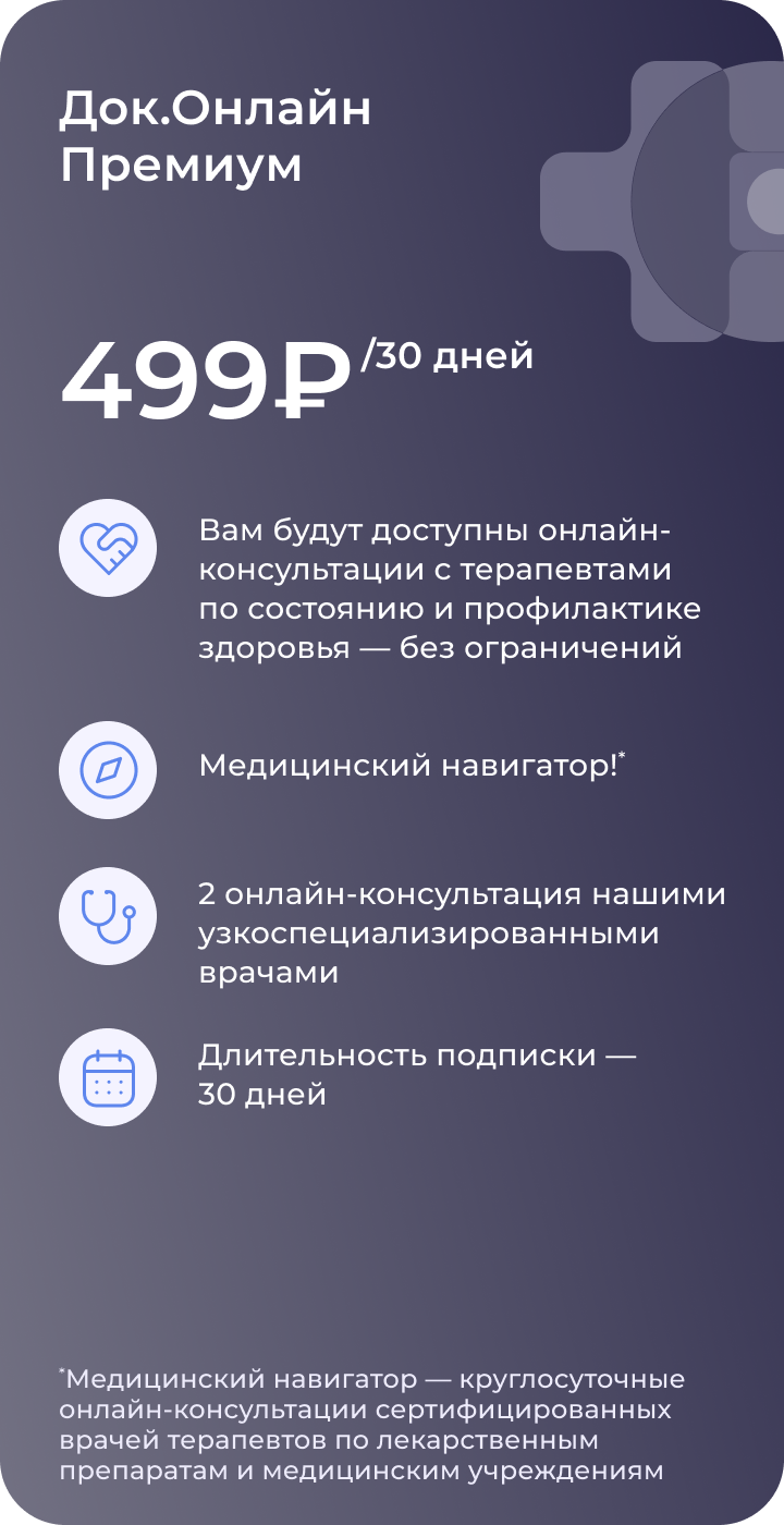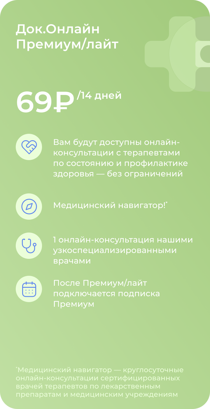 Подписка Премиум Лайт позволяет познакомится с платформой Док.Онлайн.